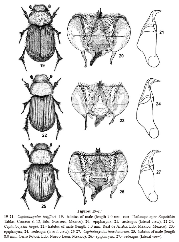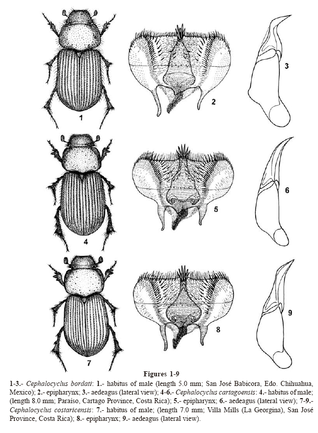 Key Words: Aphodiidae, Cephalocyclus, new species, new combination, new synonymies, taxonomy, distribution, Mexico, Costa Rica.