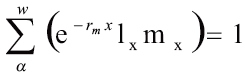 Donde: w- α corresponde al periodo reproductivo, lx es la supervivencia específica de edad de individuos de edad x (días) y mx la fecundidad específica de edad (promedio de individuos/hembra/día). A los parámetros poblacionales se les calculó el intervalo de confianza al 95%; la varianza fue estimada mediante la técnica "Jackknife" (Meyer et al. 1986).