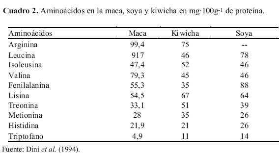 La crianza larval masiva de C. externa se realizó empleando huevos de Sitotroga cerealella (Iannacone & Lamas 2002, Iannacone et al. 2007). Se seleccionaron 200 pupas de C. externa provenientes de la crianza de crisópidos del PNCB-SENASA, éstas fueron acondicionadas en jaulas de dos mangas o jaulas de pre-oviposición, hasta la emergencia de los adultos y mantenidas con una dieta artificial estándar a base de miel, agua y polen, hasta alcanzar la madurez sexual. Posteriormente fueron sexados según la conformación del abdomen y su terminación con respecto a la genitalia externa. Luego se colocó una hembra y un macho en envases cilíndricos de plástico de 1 l de capacidad, de 11,5 cm de alto por 12 cm de diámetro (unidades de oviposición y alimentación). Ocho dietas artificiales fueron probadas individualmente, siete dietas artificiales fueron elaboradas a base de maca (M), soya (S) y kiwicha (K), además de la dieta estándar con las que se alimentaron a las parejas de C. externa en las unidades de oviposición y alimentación, realizándose ocho repeticiones para cada dieta. El Cuadro 2 muestra comparativamente las concentraciones de los aminoácidos presentes en las harinas de maca, soya y kiwicha, componentes de las dietas evaluadas para la crianza de adultos de C. externa.