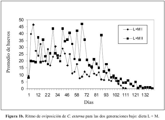 Longevidad de hembras y machos. La longevidad de hembras y machos de C. externa, se determinó teniendo en cuenta la fecha de emergencia de los adultos en la jaula de dos mangas y la fecha de su muerte en las unidades de oviposición.