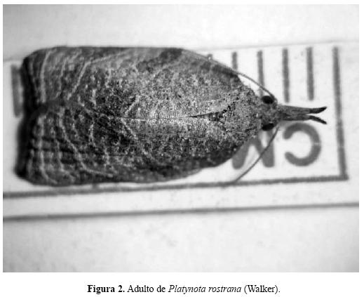Considerando el fenotipo y la genitalia de los especímenes colectados en Tamaulipas, la especie dominante corresponde a Platynota rostrana Walker (1863), especie altamente polífaga y registrada en más de 50 diferentes hospederos, incluyendo cítricos. Considerando la presencia durante los últimos años de P. rostrana en la zona citrícola de Tamaulipas, se requiere conocer el status sanitario de esta nueva plaga, estableciendo su impacto económico y considerando el incremento en costos de producción, así como la reducción en la producción, la dispersión en las áreas de producción, el rango de hospederos alterantes y las prácticas de manejo, evaluar la efectividad biológica de diferentes productos químicos y estudiar sus enemigos naturales.