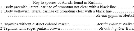 Taxonomic notes on the tribe Acridini Latreille (Acridinae: Acrididae: Orthoptera) of Kashmir, India