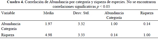 Se realizaron tres análisis de correlación, el primero entre la riqueza de especies de los humedales y la presencia de grullas, el segundo entre la riqueza de especies y la abundancia de grullas, y el tercero entre la riqueza de especies y la abundancia considerándola en categorías. También se hizo la correlación de la riqueza de especies por gremio (Anátidos, playeros y otras aves) y la presencia de grullas. Se generó una matriz de presencia y ausencia de cada una de las especies registradas en los humedales, con una columna de presencia y ausencia de grullas en los mismos humedales para realizar una prueba de G (Sokal & Rohlf 1994) con el fin de determinar si cada especie estaría en un humedal asociada o no a la presencia de las grullas. Si el valor de G obtenido en la prueba es mayor al valor de χ2 de tabla a 0.05 significa que la distribución de las especies no es igual por lo que hay una relación con la presencia de las grullas.