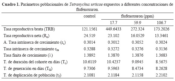 Efecto de concentraciones subletales de flufenoxuron sobre parámetros poblacionales de Tetranychus urticae Koch (Acari: Tetranychidae)
