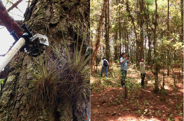This study took place at Centro para la Conservación e Investigación de la Biodiversidad de los Altos de Chiapas (CECIBACH) in the Municipio de San Cristóbal de Las Casas. Until 2019, CECIBACH was known as the Estación Biológica San José. This combined biological station/zoological park/nature reserve encompasses a 16-hectare parcel of semi-conserved pine-oak forest centered at coordinates 16°43’12” N, 92°42’03” W in the Central Plateau of Chiapas at 2350-2380 meters above sea level (Fig. 1), with a temperate subhumid climate and year-round rains (Aranda-Coello et al., 2018; Aranda-Coello, 2019). The forest on the property is dominated by Pinus oaxacana, P. oocarpa, P. pseudostrobus, Quercus crispipilus, Q. pilicaulis, P. peduncularis and Q. acatenangensis (Gonzáles-Ortega & Pérez-Suasnávar, 2007). The trees support several species of epiphytic bromeliads, with Tillandsia guatemalensis being the most common (Fig. 2). The CECIBACH is administered by the Secretaría de Medio Ambiente e Historia Natural and was officially established on 29 January 2015 as the first biological station in the highlands of Chiapas dedicated to regional wildlife conservation (Aranda-Coello et al., 2018).