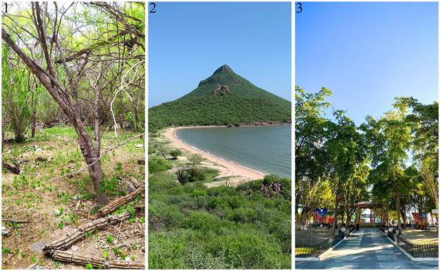 Figures 1-3 Collection sites in Sinaloa. 1. Cañón del Diablo in Sierra Barobampo. 2. Isla Nescoco in Navachiste, Guasave. 3. Plazuela 27 de September in Los Mochis city.