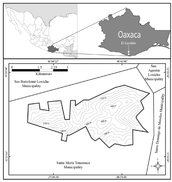 Figure 1 Geographical location of the Communal Natural Protected Area (CNPA) El Gavilán, Oaxaca, México.