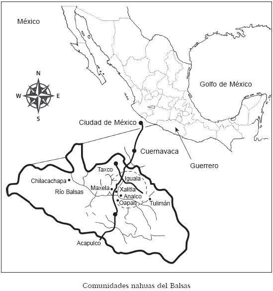 En este contexto, se ofrece y analiza aquí un esbozo de la organización global del habla del náhuatl de una región específica, el Balsas, localizado a unas tres horas y media al sur de la Ciudad de México por la carretera México-Acapulco, en el estado de Guerrero, México. Aunque esta región se subordinó al "imperio" azteca y por consecuencia pagaba tributo al grupo dominante, a su vez fue relativamente independiente. Su peculiaridad se señala por un número importante de factores. Recibió una denominación específica por parte de los aztecas, Cohuixca, palabra que se traduce como "lagartija". Esto nos da una idea de la forma en que el grupo dominante azteca trató otras variedades de náhuatl y a sus hablantes, implicando una alusión a las condiciones de calor y aridez de la zona, juntamente a un nombre peyorativo para los hablantes, quienes probablemente eran considerados en su mayoría Macehualtin "plebeyos, campesinos, miembros de la clase baja". Actualmente la región del Balsas comprende cerca de 20 comunidades con un total de cerca de 50 000 habitantes, diseminados a lo largo de la rivera del río del mismo nombre (véase el mapa de la página siguiente).