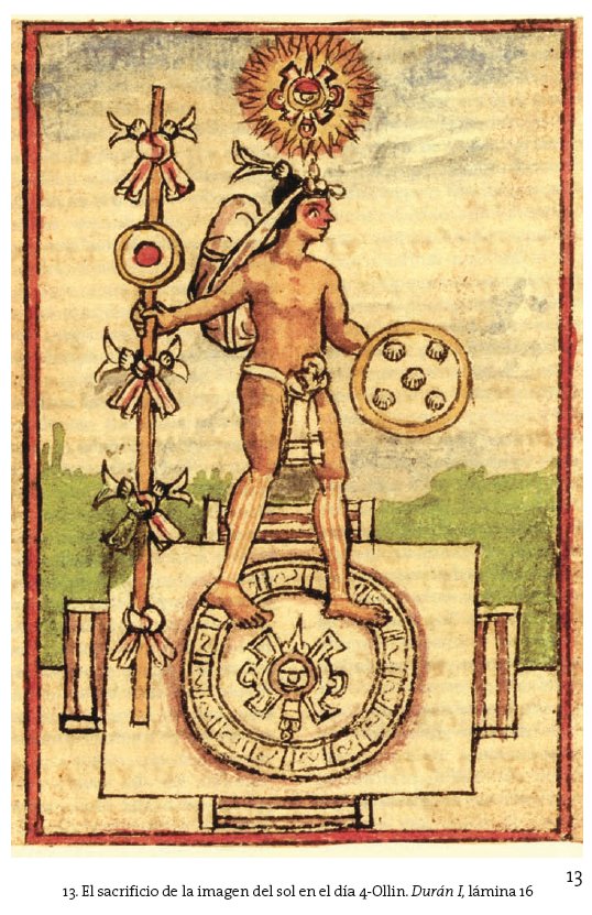 Según la gesta mitológica antes considerada, el mundo ya es y seguirá siendo mientras se mantenga lo que lo define como tal: el movimiento espacio-temporal. Además de observar (tlachía) el curso de los astros y más específicamente del sol, agente principal de este movimiento, los antiguos nahuas elaboraron una red calendárica de ciclos que les permitieron medir el tiempo, vivirlo mediante ritmos periódicos culturalmente establecidos y mantenerlo. Esta vivencia del tiempo implicaba momentos críticos, fuertes o débiles, pero siempre sentidos y eventualmente temidos: el amanecer17 y el anochecer; el mediodía y la medianoche, es decir el cenit y el nadir del curso solar; los cambios de estaciones; algunos fenómenos naturales considerados como portentosos; los fines de secuencias temporales calendáricamente definidas, etcétera.