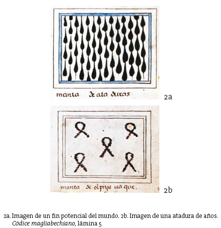 Conjuradas las tinieblas, el fuego nuevo consagraba asimismo la llamada "atadura de años" (xiuhmolpilli) y el comienzo de un mundo nuevo. Unas imágenes muy expresivas (fig. 2a y 2b), reflejan el temor y la angustia que prevalecían entonces.