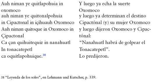 38 "Leyenda de los soles", en Lehmann und Kutscher, p. 339.
