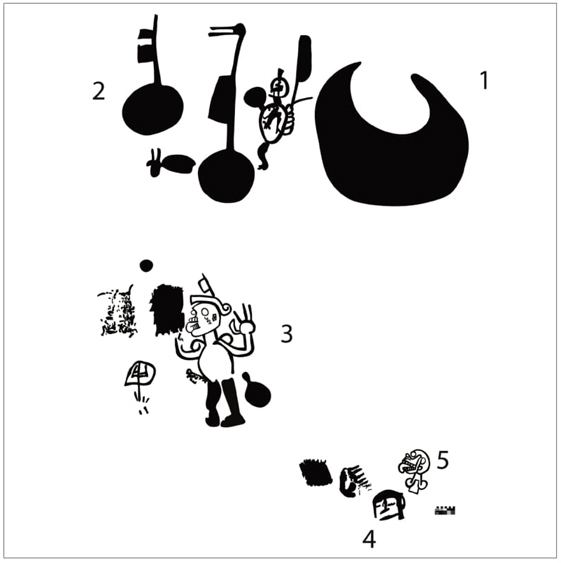 Figura 1a Detalle del panel 1. Luna y personajes. Sitio de Tepexi. Nacatongo, Tlayacapan, Morelos.