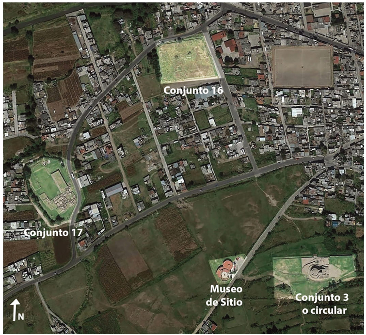 Figura 2 Referencia fotográfica del Conjunto 16 y su relación con otros conjuntos de la zona de monumentos arqueológicos de Calixtlahuaca.