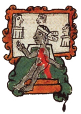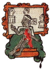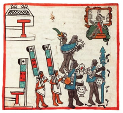 y se realizaba el rito Neštlâwalistli (el rito de pagarse a sí mismos en reciprocidad) en la cima de todos los cerros, [en donde estaban colocados los tepiktotôn]. |