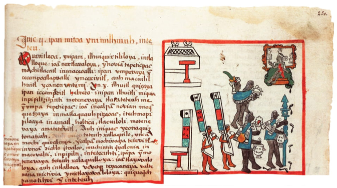 Fuente: Imagen redibujada y redigitalizada por Carlos Ponce Torres en 2022, a partir de la versión original en los Primeros memoriales (Sahagún 1559-1561, 250r)