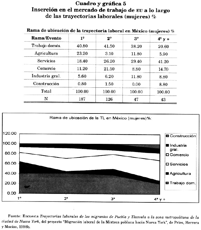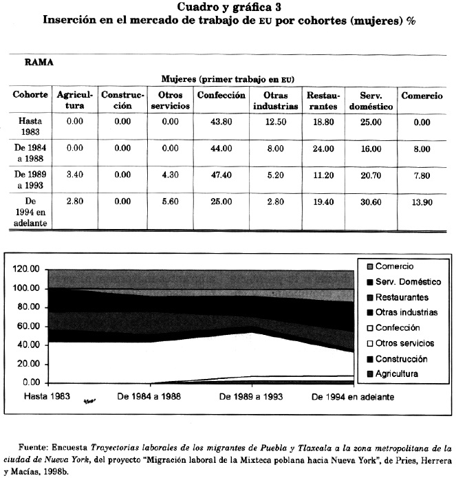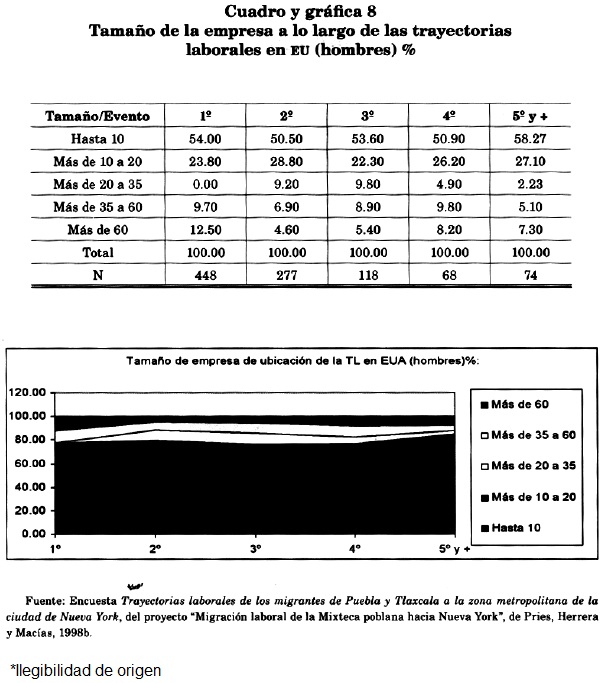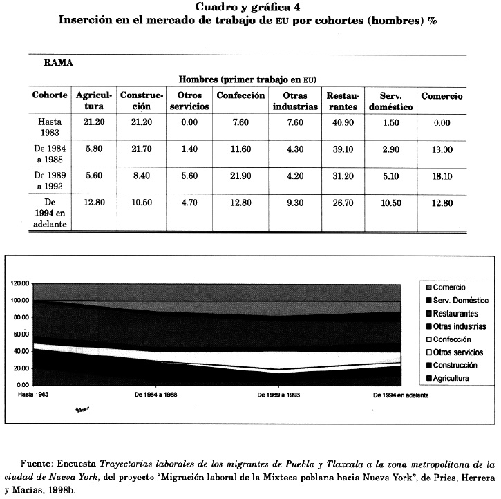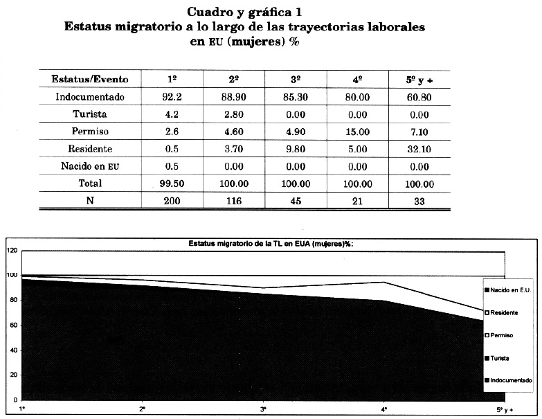 Como puede verse en los cuadros y gráficas 1 y 2,10 la migración de México a Nueva York llega casi en su totalidad como indocumentada y así permanece durante sus eventos laborales sucesivos.11