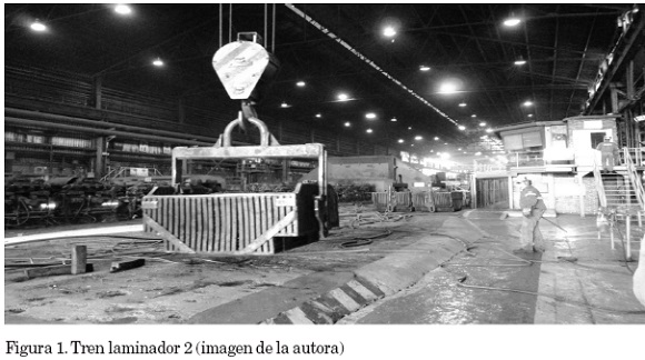 En este mismo sentido, una señal luminosa en la pared lateral del galpón del tren laminador 2 es un "pasamensajes" (a la izquierda de la figura 1, se aprecia en forma borrosa el letrero luminoso). Esta forma de impartir directivas a través de un letrero forma parte de una política de reorganización del trabajo, conjuntamente con la introducción de tecnología, específicamente informática. Esta es una de las características de lo que se denomina modelo toyotista (Coriat, 1991).