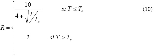 donde Sa (μmax, T) denota la ordenada espectral de pseudo-aceleración evaluada para μmax y T, μmax es la demanda máxima de ductilidad, μmax igual a 1 implica comportamiento elástico, y Sa (1,T) es el coeficiente sísmico correspondiente a la resistencia lateral mínima requerida para mantener una estructura con 5% de amortiguamiento crítico en su rango elástico de comportamiento. La Ecuación 7 debe diferenciarse de los factores de reducción actualmente utilizados en los códigos de diseño sísmico. Normalmente los factores de reducción de resistencia usados en la práctica consideran de manera implícita que la resistencia lateral real de una estructura puede ser de dos a cinco veces su resistencia de diseño. Mientras que la Ecuación 7 sólo considera la reducción en resistencia debido a comportamiento plástico, un factor práctico debe tomar en cuenta además una reducción debida a sobrerresistencia.