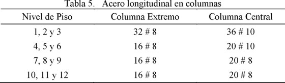 A partir de las dimensiones mostradas en la Tabla 3 y la masa reactiva del edificio de doce pisos, se estimó un periodo fundamental de vibración de 1.24 seg, que es ligeramente menor que el valor de diseño (Tmax = 1.25 seg).