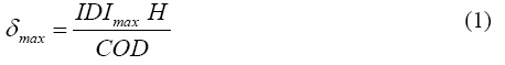 donde IDImax es la distorsión máxima permisible, H la altura total del edificio a partir del nivel de suelo, y COD un factor que contempla que la distorsión no es constante en todos los entrepisos del edificio. Antes de utilizar el valor de δmax para estimar el valor del periodo fundamental de vibración de la estructura, es necesario considerar que la edificación es un sistema de varios grados de libertad, y que un espectro de desplazamientos resume resultados derivados de sistemas de un grado de libertad. Conforme a lo mostrado en la Figura 1, el valor de δmax debe modificarse para contemplar el efecto de varios grados de libertad a través del parámetro α (para mayor discusión, veáse Terán 2004). El espectro de desplazamientos para el estado límite de servicio contempla comportamiento elástico y un porcentaje de amortiguamiento crítico (ξ) de 2%. Para el estado límite de seguridad, se plantea el uso de un espectro de desplazamientos para ductilidad acumulada constante correspondiente a NEHμ = 3(μu − 1)=12 y ξ de 5%. En cuanto al μ concepto de espectro para ductilidad acumulada constante, se refiere al lector a las discusiones detalladas que alrededor del mismo han formulado Terán y Jirsa (2004) y Terán y Espinoza (2008). En cuanto a los valores de porcentaje de amortiguamiento crítico asignados a los espectros, es importante que dicho porcentaje sea congruente con el nivel de esfuerzos esperado en los elementos estructurales. Chopra (2001) sugiere que el amortiguamiento tiende a crecer de una manera importante conforme el nivel de esfuerzos en un elemento estructural se incrementa. En particular, si el nivel de esfuerzos es del orden o menor que el 50% del esfuerzo de fluencia, el coeficiente equivalente de amortiguamiento puede ser sustancialmente menor al 5%; mientras que si el nivel de esfuerzos corresponde a la fluencia del elemento estructural, el amortiguamiento suele ser mayor que 5%. Se considera que los porcentajes de 2% y 5% asociados a los estados límite de servicio y seguridad, respectivamente, son valores razonablemente conservadores asociados al estado de daño estructural asociado a cada uno de dichos estados límite.