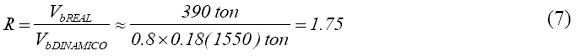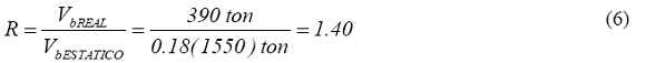 Si se considera que el cortante de diseño dinámico es alrededor de 0.80 veces el producto del coeficiente sísmico (leído directamente del espectro de resistencia) y del peso reactivo de la estructura, entonces el factor de sobrerresistencia respecto al cortante dinámico es: