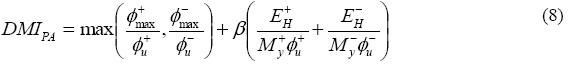 El daño a nivel local (a nivel elemento) se evalúa en los extremos de las vigas, donde se supone se concentran las mayores demandas de comportamiento plástico. La estimación del daño se realizó a través de una versión modificada del índice de Park y Ang (Terán 1998):