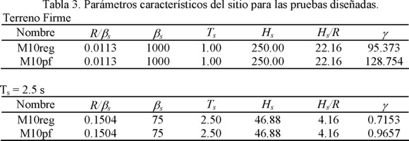 Con estos resultados se busca observar la influencia que tienen los efectos estudiados tanto en las amplificaciones del movimiento como en los parámetros dinámicos principales de la estructura, tales como frecuencias naturales y amortiguamiento, eliminando la influencia de los efectos de sitio. En la tabla 3 se presentan los parámetros adimensionales que caracterizan al sitio.