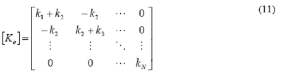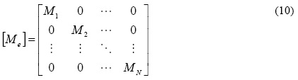 donde M1, M2,..., MN son las masas concentradas y k1, k2,..., kN las rigideces de entrepiso. A diferencia de la matriz de rigidez, la matriz de amortiguamiento de la estructura no puede construirse a partir de los amortiguamientos de entrepiso, ya que estas cantidades no están bien establecidas. Para construir la matriz de amortiguamiento se siguió la metodología descrita por Crouse y McGuire (2001).