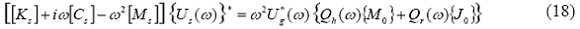 Los términos Cm y Km, con m=h,r,hr, representan los resortes y amortiguadores equivalentes del suelo. Aplicando trasformada de Fourier en ambos miembros de la ecuación 12 , la ecuación matricial de movimiento del sistema se reduce a