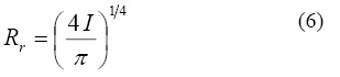 donde Rm es el radio de un círculo equivalente a la superficie de desplante de la cimentación, con igual área o igual momento de inercia que dicha superficie, esto es: