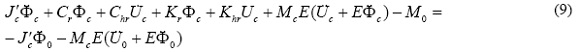 donde {Us} = {{Us}T ,Uc, Φc}T es el vector de desplazamientos del sistema, de orden N+2. Además, {M0} y {J0} son vectores de carga definidos como