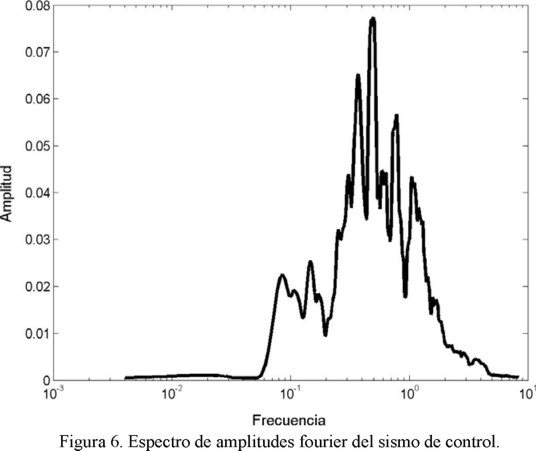 Para estas pruebas se utilizó como movimiento de control el sismo del 19 de septiembre de 1985 registrado en CU, cuyo espectro de amplitudes de Fourier se muestra en la figura 6. Esta excitación tiene un intervalo dominante de periodos entre 1 y 3.3 s, con una amplificación especialmente importante alrededor de 2 s.