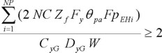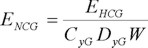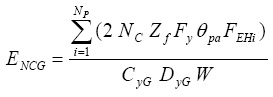 donde EHCG es la capacidad de disipación de energía histerética del sistema global, que se estima como se ilustrará mas adelante. DyG y CyG son el desplazamiento y el coeficiente sísmico global de fluencia que se obtienen mediante un análisis de empuje lateral estático no lineal, y W es el peso total de la estructura.