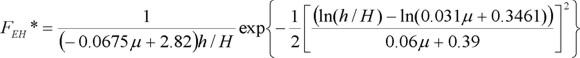Para estimar la contribución de los distintos miembros estructurales a la capacidad de disipación de energía histerética de las edificaciones de acero, usualmente se supone una distribución de energía histerética a lo largo de la altura. Mientras que Akbas et al. (2001) propusieron una distribución lineal, estudios recientes sugieren que, si la disipación de energía se concentra en las vigas de un marco estructural, una distribución lognormal es más representativa de la manera en que se distribuye la energía plástica a lo largo de la altura (Bojórquez 2007). Un factor de participación de energía histerética FEH puede establecerse para estimar la contribución de cada piso a la capacidad total de la edificación. En particular, FEH puede formularse de tal manera que se evalúe el porcentaje de capacidad de energía última que un piso disipa durante un movimiento sísmico (los pisos críticos contribuirán con su capacidad total; lo cual se expresa mediante un valor unitario para FEH). El parámetro FEH para un piso en particular se estima como la relación entre la energía histerética disipada por dicho piso dividida por la energía histerética disipada en el piso crítico; por está razón FEH para el piso crítico tiene un valor unitario. Bojórquez et al. (2008) mediante el análisis de ocho marcos estructurales de acero sometidos a 31 movimientos de larga duración generados en el suelo blando del valle de México, obtuvieron la siguiente expresión para estimar FEH en marcos estructurales de acero: