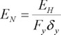 De todos los tipos de energía absorbidos y disipados por una estructura, EH es la que está más relacionada con el daño estructural. La energía histerética disipada es igual al área total encerrada por cada uno de los ciclos de histéresis que desarrolla la estructura durante una excitación sísmica. Sin embargo, aunque EH proporciona información acerca de las demandas de deformación plástica acumuladas, una idea del número y magnitud promedio de los ciclos en los que una estructura incursiona en su comportamiento plástico, y puede resultar un parámetro apropiado para medir el daño estructural, su desventaja es que no aporta información suficiente acerca de la importancia que las demandas acumuladas de deformación plástica tienen en el desempeño sísmico de las estructuras, ya que se pueden tener valores similares de energía histerética en un sistema que tenga gran resistencia y desarrolle pocos ciclos de carga, y en un sistema con poca resistencia y que desarrolle muchos ciclos de carga (Terán Gilmore 2001), y el daño que se presenta en ambos sistemas es completamente diferente. Un parámetro que se correlaciona mejor con el daño estructural es la energía histerética normalizada con respecto a la fuerza Fy y desplazamiento de fluencia δy (Krawinkler y Nassar, 1992; Terán Gilmore y Simon, 2006):