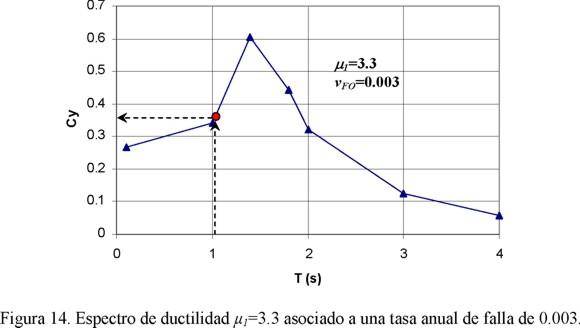 Este paso consiste en determinar los requerimientos de resistencia lateral (coeficiente sísmico requerido Cyreq) de la estructura a través de los espectros de ductilidad constante con TAFU (figura 4) en función del periodo de la estructura To, la capacidad de ductilidad μG y la tasa anual de falla deseada en la estructura νFO.