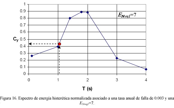 En la figura 16 se ilustra el espectro de EN, para el periodo de la estructura To=1.04s y el coeficiente sísmico real Cyreal=0.43 se obtiene ENreq1=7. Por lo tanto, se tiene que la energía histerética normalizada requerida en la estructura es ENreqG= 7/3.5=2.