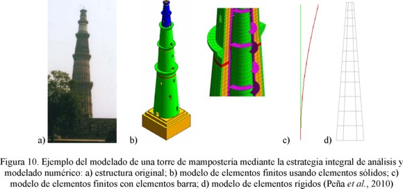 Generalmente, una propuesta que ha dado buenos resultados es la de usar modelos simplificados en combinación con modelos refinados (Peña et al., 2007). Los resultados obtenidos de un modelo sirven de base para una mejor concepción del otro modelo, el cual puede utilizar una herramienta de análisis diferente. Así mismo, combinando los resultados de los diferentes modelos, es posible obtener una mejor y más completa estimación del comportamiento estructural de un edificio histórico.