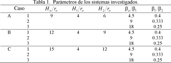 Los parámetros del sistema que se han variado son la relación de esbeltez Ho/ro y los contrastes de rigidez βo/β1 (estructura/suelo) y β1/β2 (suelo/basamento). En todos los casos analizados se supuso que t = 0.01Ho (espesor del muro) y d = 0.02Ho (peralte de la losa de fondo).