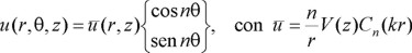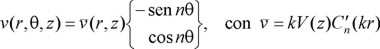 donde k es el número de onda horizontal y n el número de onda azimutal; Cn(ξ) es una solución de la ecuación de Bessel de orden n , dada por