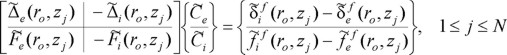 Para fines de análisis, el domino en estudio se divide en dos regiones: 1) una interior i(r ≤ ro, 0 ≤ z ≤ Hs) para la lumbrera y el suelo de soporte y 2) otra exterior e(r ≥ ro, 0 ≤ z ≤ Hs) para el suelo circundante, siendo ro el radio de la lumbrera y Hs la profundidad del depósito de suelo. Es interesante hacer notar que la región exterior está formada sólo por estratos de suelo, mientras que la región interior está formada por estratos tanto de suelo como de lumbrera. Para satisfacer las condiciones de frontera del problema, se utiliza el método de colocación en puntos nodales. En cada región, los campos de desplazamientos y fuerzas nodales pueden construirse mediante la superposición del campo libre y de un campo difractado, como sigue: