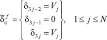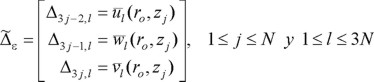 es la matriz usada en la ec. 33 multiplicando las columnas 3j − 1 por menos uno. Debido a la estructura de esta matriz, las fuerzas radial y tangencial son nulas para excitación horizontal.
