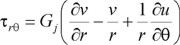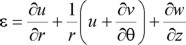 Los componentes de esfuerzo sobre una superficie cilíndrica están relacionados con los componentes de desplazamiento mediante: