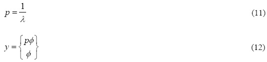Cabe destacar que la solución queda expresada en términos de números complejos. En el caso del valor inverso de p, se definen la parte real e imaginaria y su significado en la solución del sistema: