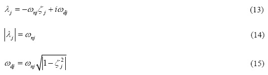 donde ωnj es la frecuencia natural no amortiguada asociada al modo j; ωdj es la frecuencia amortiguada del modo j; y ζj es el porcentaje de amortiguamiento modal asociado al modo j.