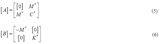 Los valores de p y y, que representan los valores y vectores característicos del problema, permiten establecer las frecuencias, porcentajes de amortiguamiento modal y las formas modales del sistema estructural. La ecuación 10 contempla un sistema de 2N ecuaciones. La estimación de los valores y vectores característicos puede plantearse a partir de:
