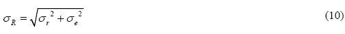 Por otra parte, se estimó la desviación estándar máxima resultante (sR) de los residuos (ecuación 10), en escala logarítmica de base 10, como función de las desviaciones estándar intra (sr) e inter-evento (se) respectivamente (Atkinson y Boore, 2003).