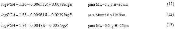 La relación de atenuación para la PGA (ecuación 14), presenta las siguientes limitaciones: