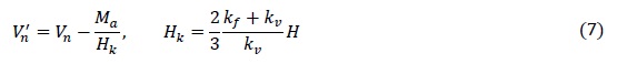 De la ec. 6 se observa que para muros muy largos el cortante resistente es igual al nominal, ya que los desplazamientos debidos a flexión son muy pequeños (kf → ∞). Para muros muy esbeltos (kv >> kf) la reducción es asintótica a 3Ma/2H, que corresponde a la máxima reducción posible de la fuerza cortante para un valor de momento dado. El momento Ma puede considerarse menor a cero si va en sentido opuesto al que genera el cortante, lo que ocasiona un aumento de la resistencia a corte. Agrupando los valores que solamente dependen de la geometría del muro, la ec. 6, puede rescribirse como