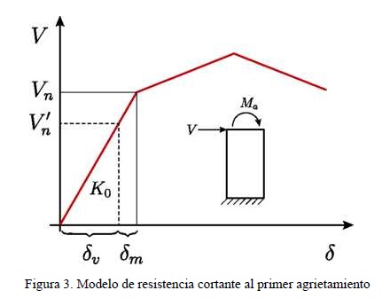 Sea δ0 el desplazamiento debido a la fuerza cortante (Vn) que produce el agrietamiento cuando no hay momento. Ese mismo desplazamiento producirá el agrietamiento si una parte de dicho desplazamiento δv es debida una fuerza cortante V'n y la parte restante δM es producida por un momento en el extremo superior del muro Ma.